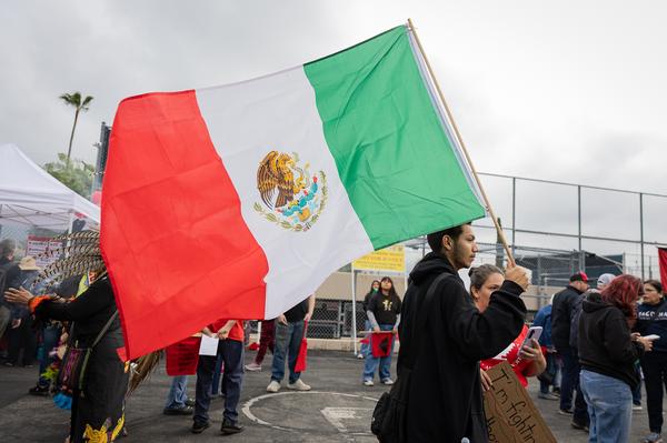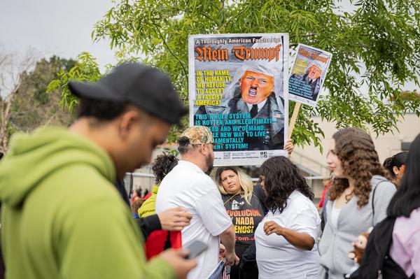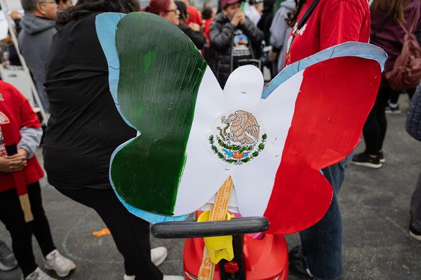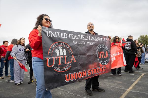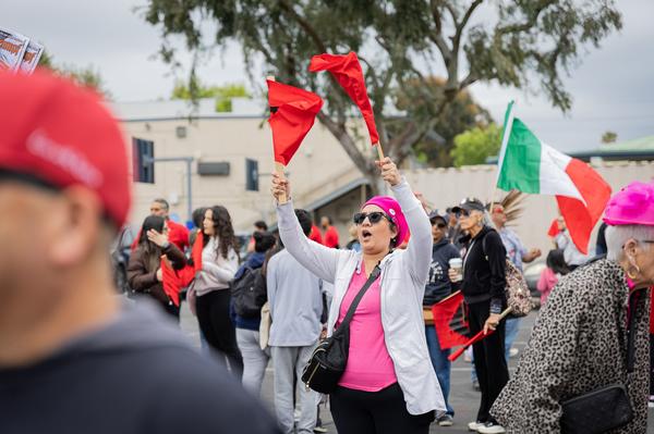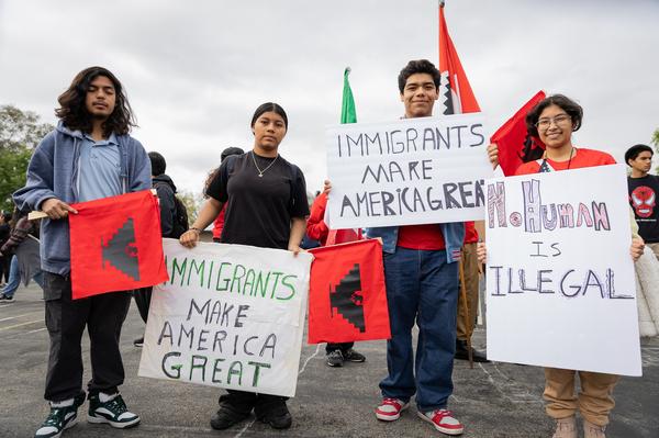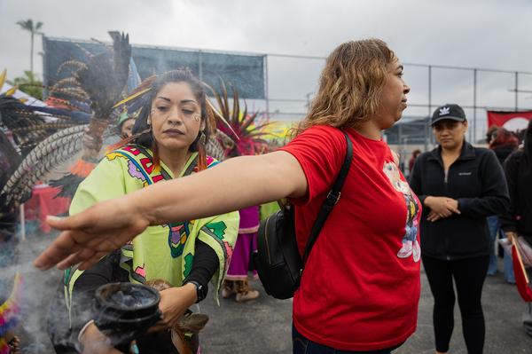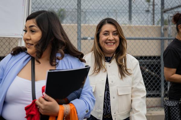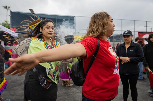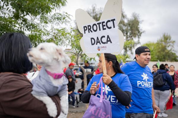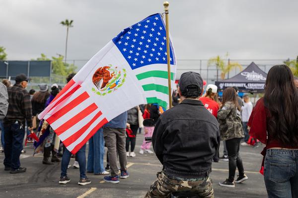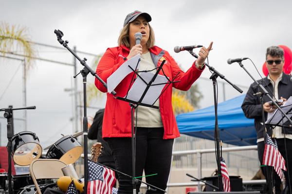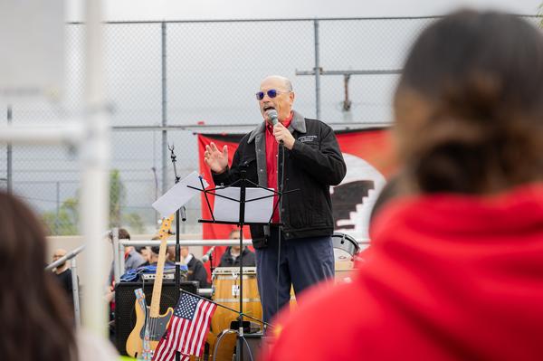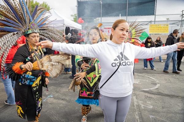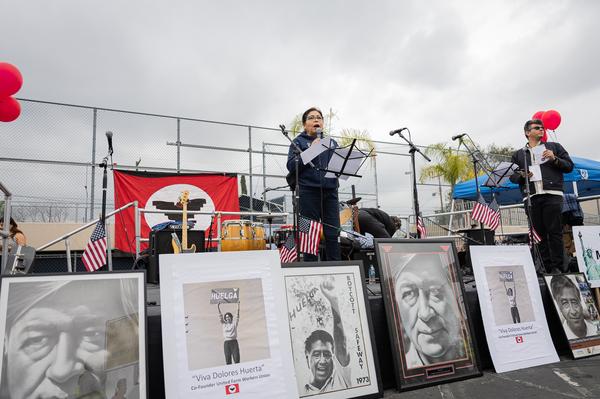 Hundreds of community members and LAUSD students gathered at Pacoima Charter Elementary to celebrate the work of Cesar Chavez while also sending a message to the White House that immigrants are the backbone of the country, in Pacoima, Calif., on Mar. 30, 2025.