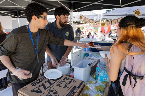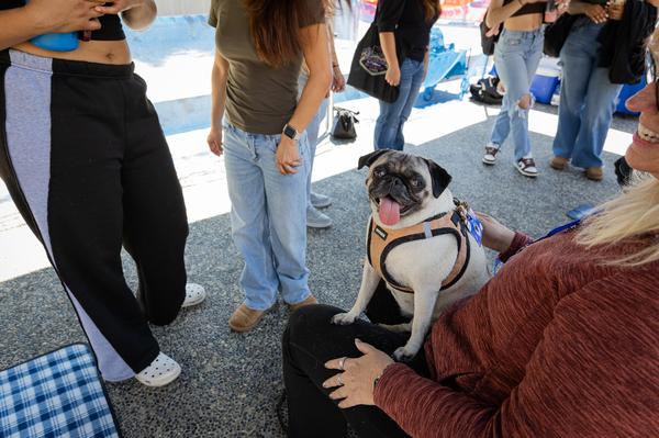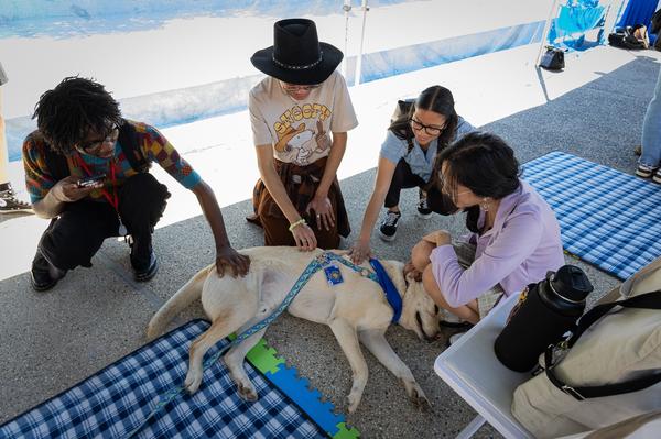 The CSUN Blues Project Program held its annual Suicide Prevention Awareness event at Plaza Del Sol, where students were greeted by therapy dogs and warm pizza from Costco.